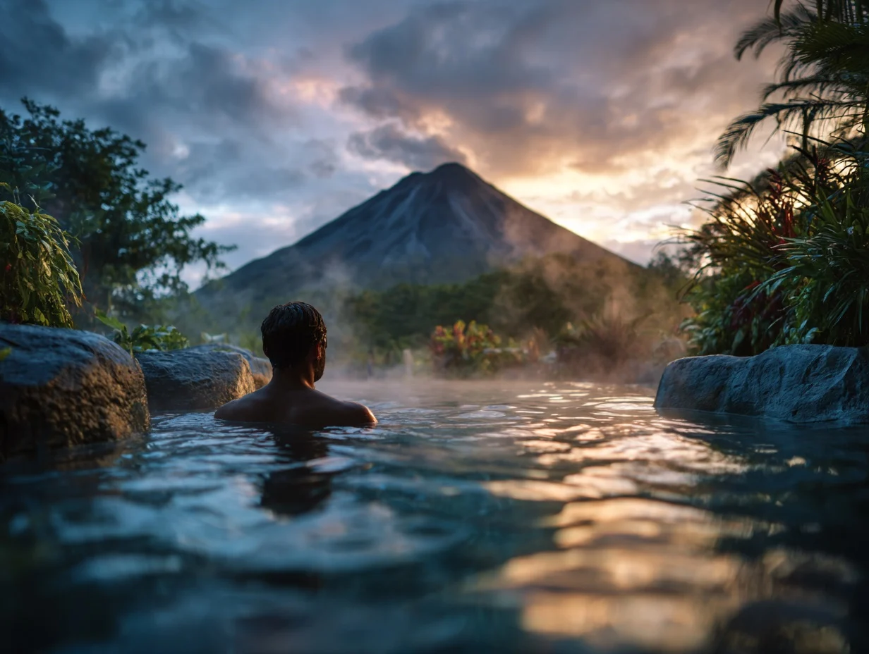Nach dem Dschungel: Ab in die heiße Quelle mit Blick auf den Vulkan. Natur-Spa auf Tico-Art.