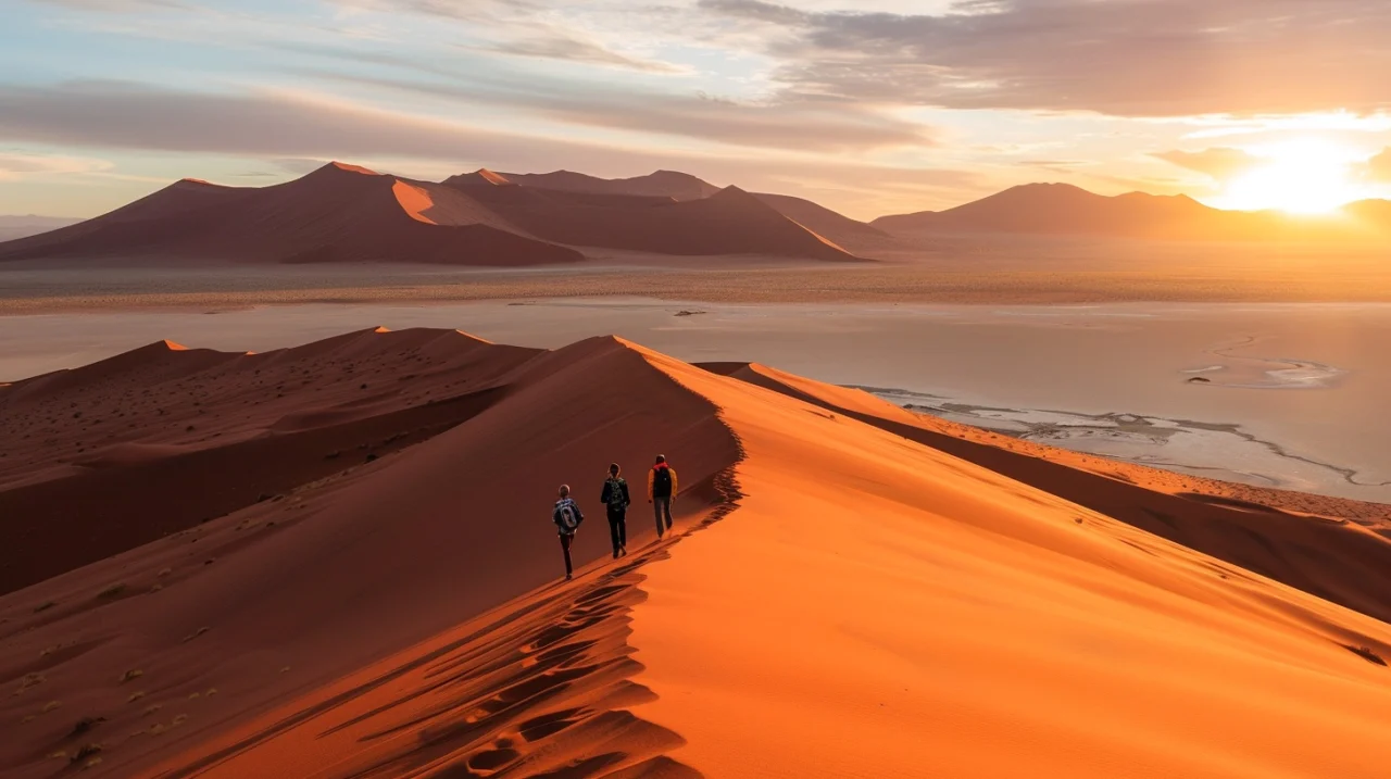 Besteige die „Dune 45“ vor Sonnenaufgang – und steh dann sprachlos in Dead Vlei zwischen fossilen Bäumen und Licht.