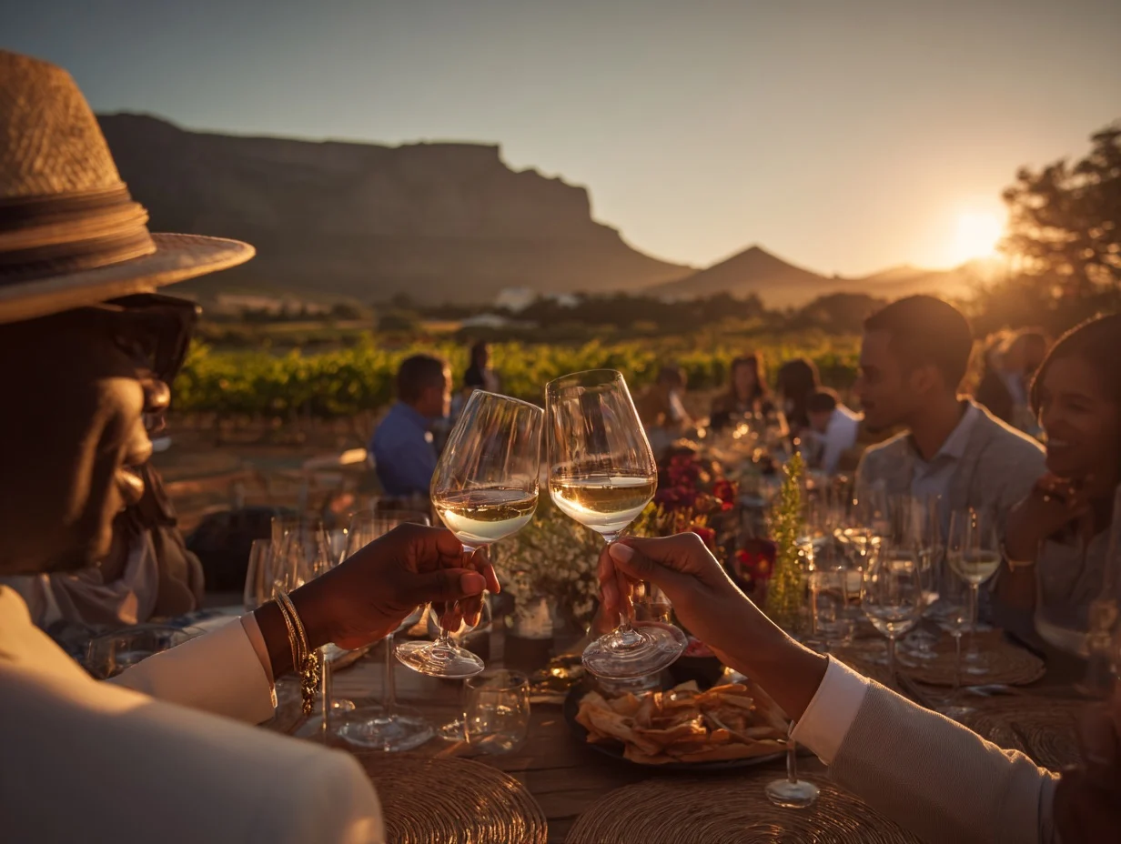 Zwischen Reben, Eichen und Ausblicken probierst du Südafrika – glasweise.