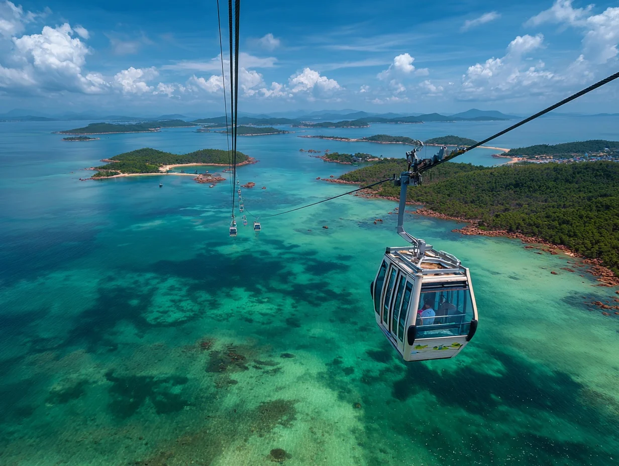 Nimm die längste Seilbahn Südostasiens – und schweb über türkisfarbenes Wasser von Phu Quoc nach Hon Thom.