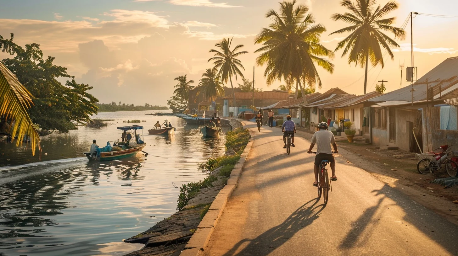 Nur eine kurze Fahrt entfernt erwartet dich in Negombo entspannte Tropenstimmung. Du erkundest die Region per Fahrrad: entlang der Lagune, vorbei an bunten Booten, kleinen Tempeln und traditionellen Fischmärkten. Einblicke in den Alltag der Fischer inklusive – und die perfekte Gelegenheit, bei einem Sundowner zur Ruhe zu kommen.